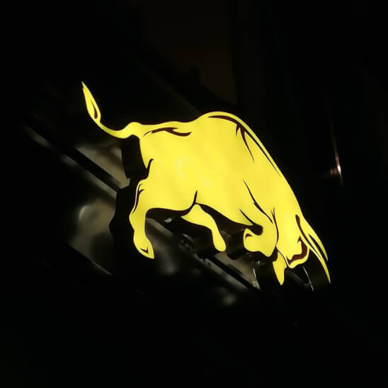 Объёмный световой короб с фигурным резом может быть любых форм и размеров. Его устанавливают, как элемент вывески или как лицевую надпись целиком. Последнее часто используют с целью экономии, но иногда такой прием становится частью удачного дизайнерского решения.
